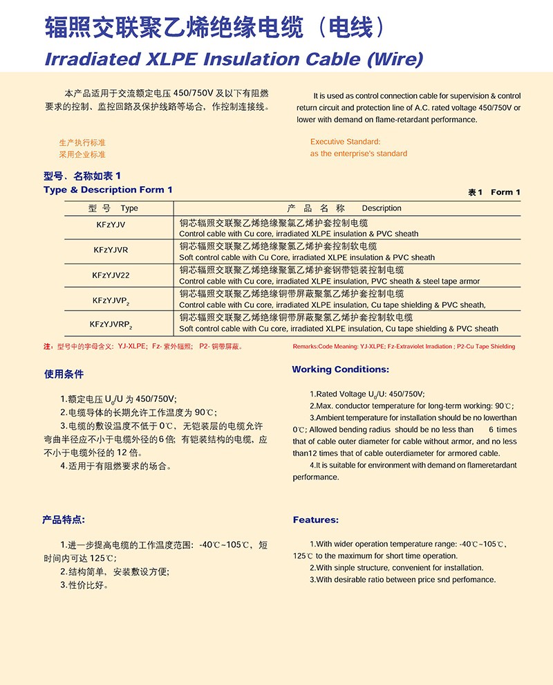 輻照交聯(lián)聚乙烯絕緣電纜(電線)的產(chǎn)品詳細(xì)介紹: