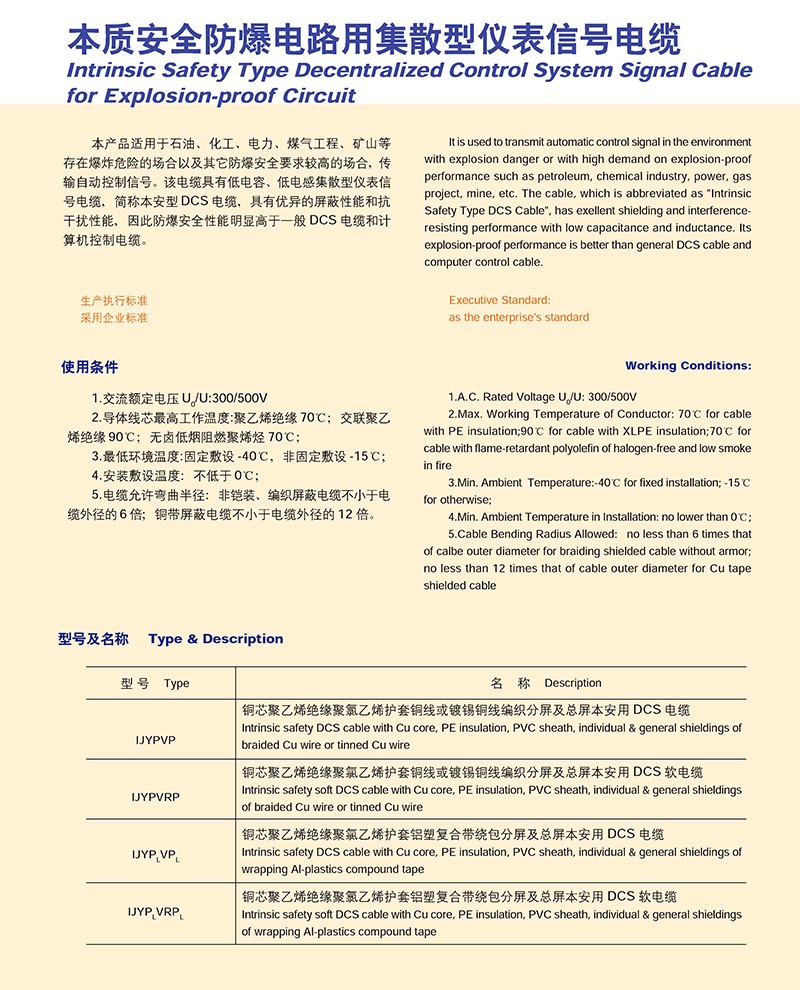 本質(zhì)安全防爆電路用集散型儀表信號電纜的產(chǎn)品詳細介紹: