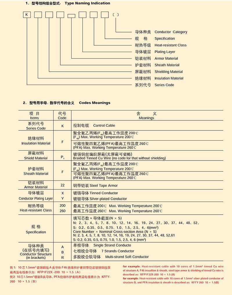 氟塑料絕緣和護(hù)套耐高溫(控制)電纜